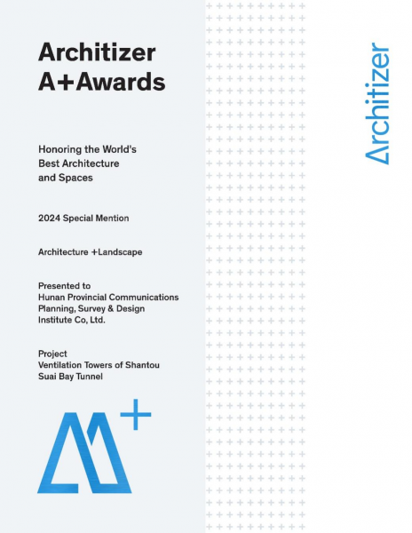 汕頭市蘇埃海灣隧道風塔項目獲Architizer A+ Awards建筑+景觀設計特別提名獎